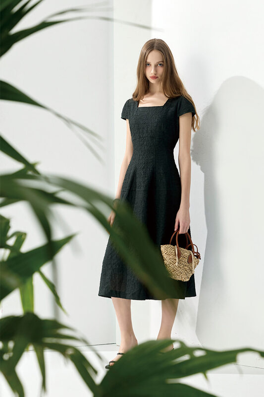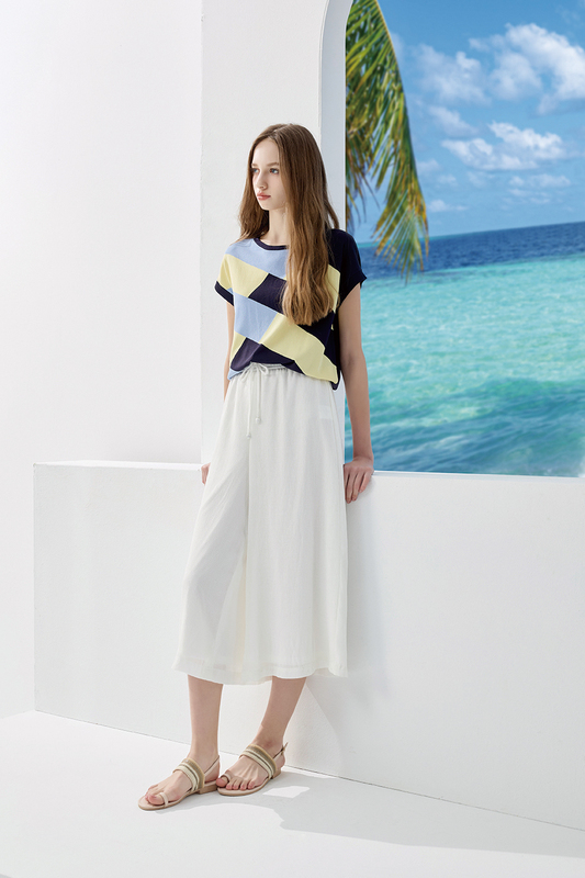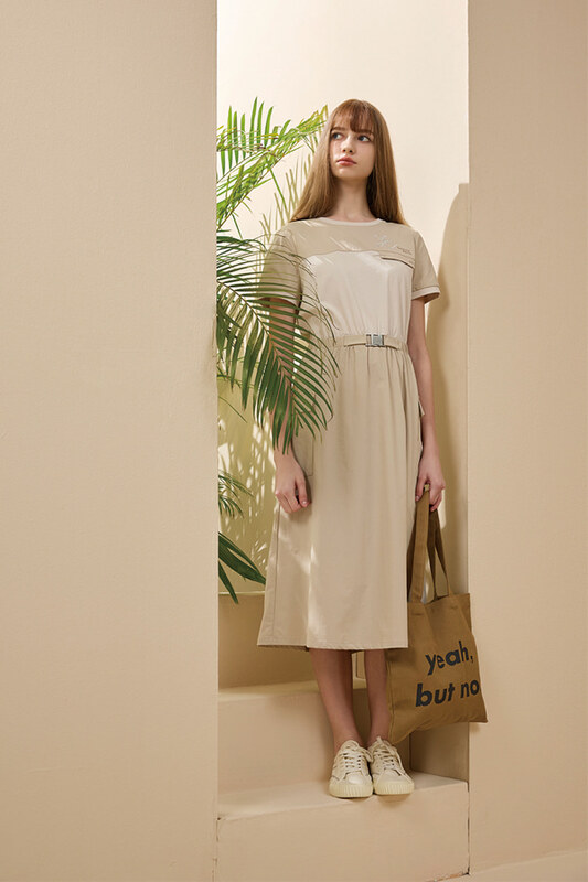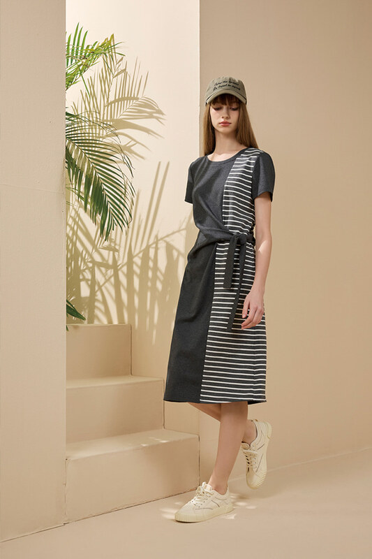 [Y3007]休閒素色條紋拼接腰際結綁洋裝