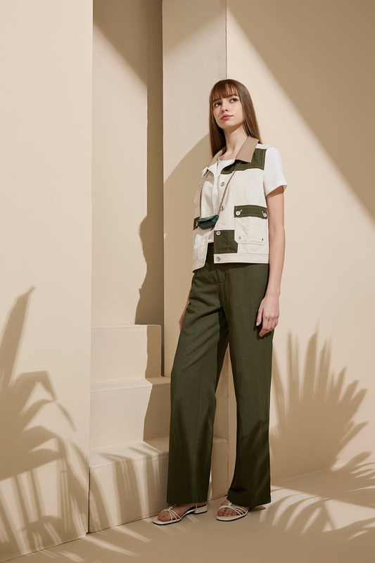 [Y7052]休閒百搭網狀拼接袖子口袋上衣