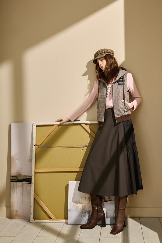 [Z2211]氣質百褶格紋長裙