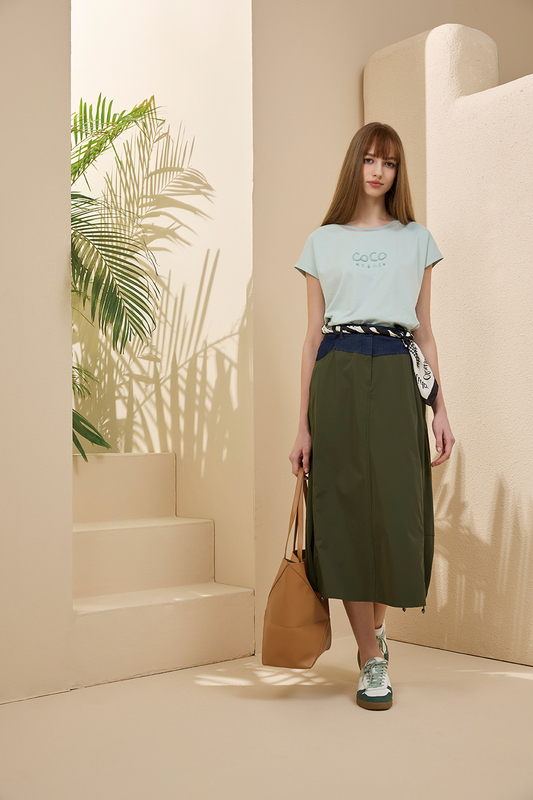 [Y7054]夏風假口袋刺繡連袖上衣