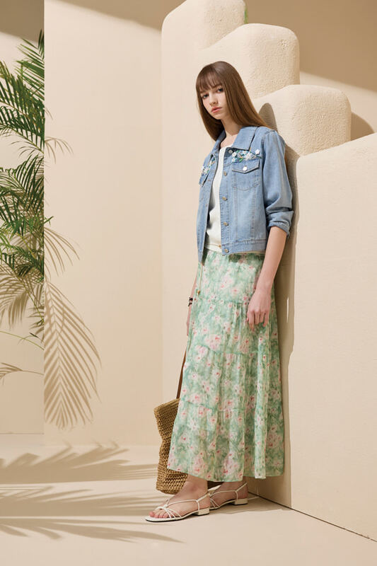[Y0256]典雅刺繡花朵單寧長裙
