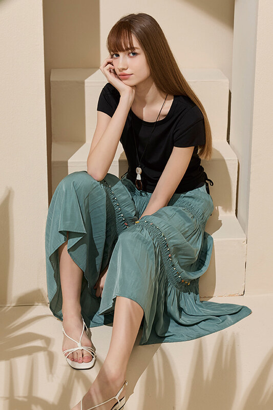 [Z0206]素面擺搭長褲裙