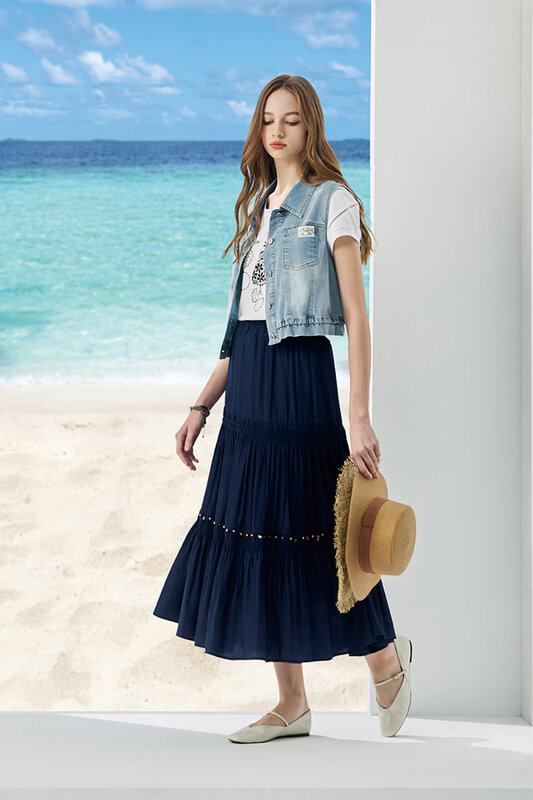 [Y0254]淑女打摺A字牛仔裙