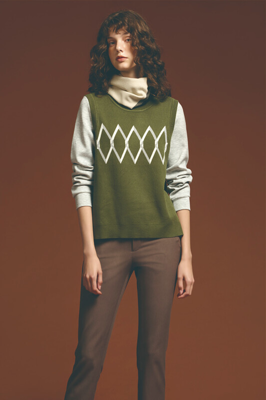 [Z5014]甜美領子蝴蝶結菱紋針織衫