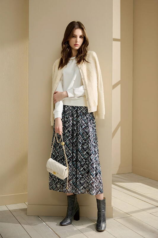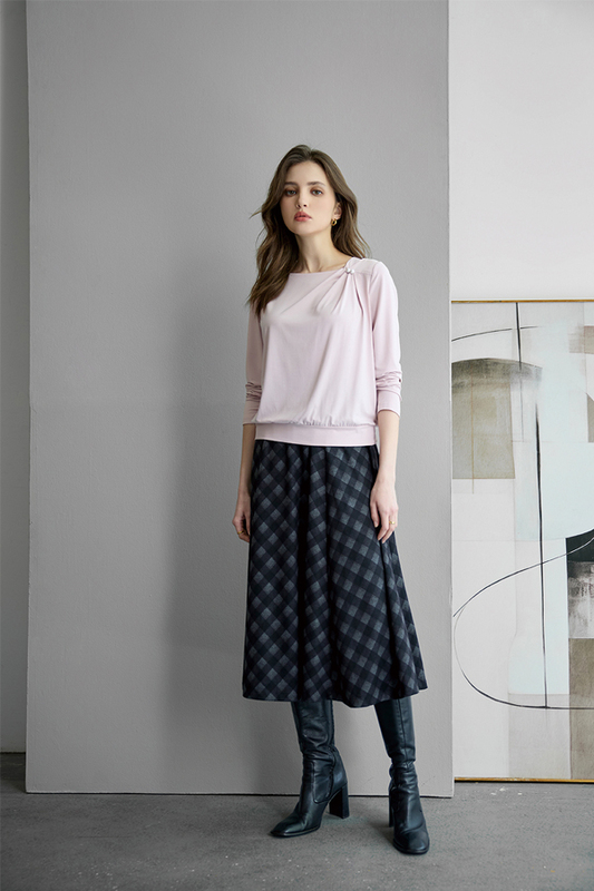 [Z2211]氣質百褶格紋長裙