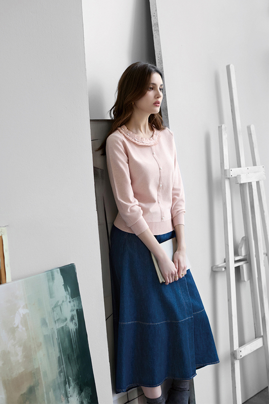 [Z5016]甜美珍珠荷葉領針織衫