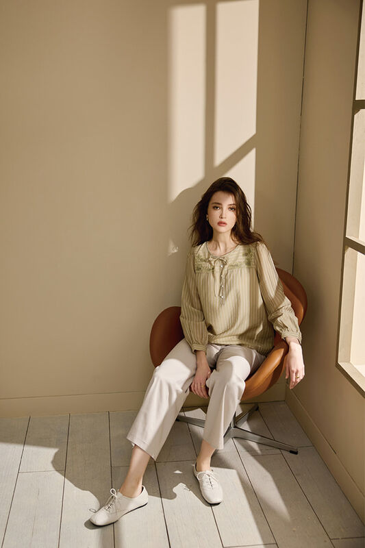 [Z7056]自然風花朵刺繡領子結綁上衣