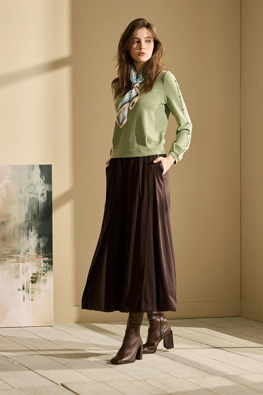 [Z5002]假領巾百褶袖針織衫