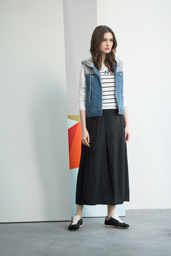 [Z0769]雙色拼接連帽牛仔背心 藍 M