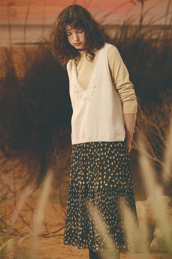 [Z2207]淑女百褶蛋糕長裙 黑花布 M