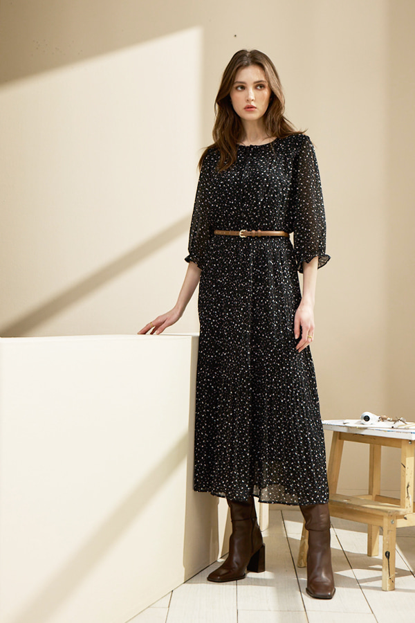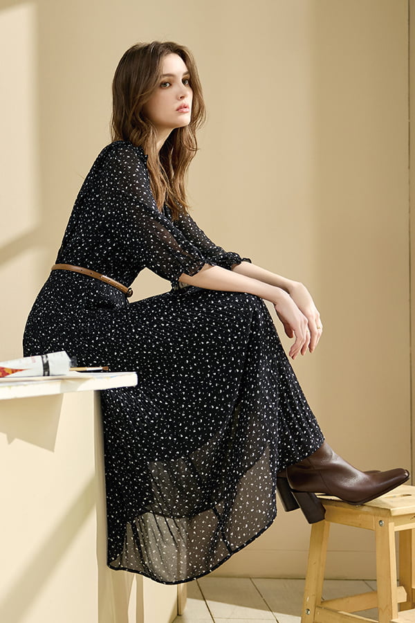 [Z3002]可愛小碎花蝴蝶結洋裝 黑 M