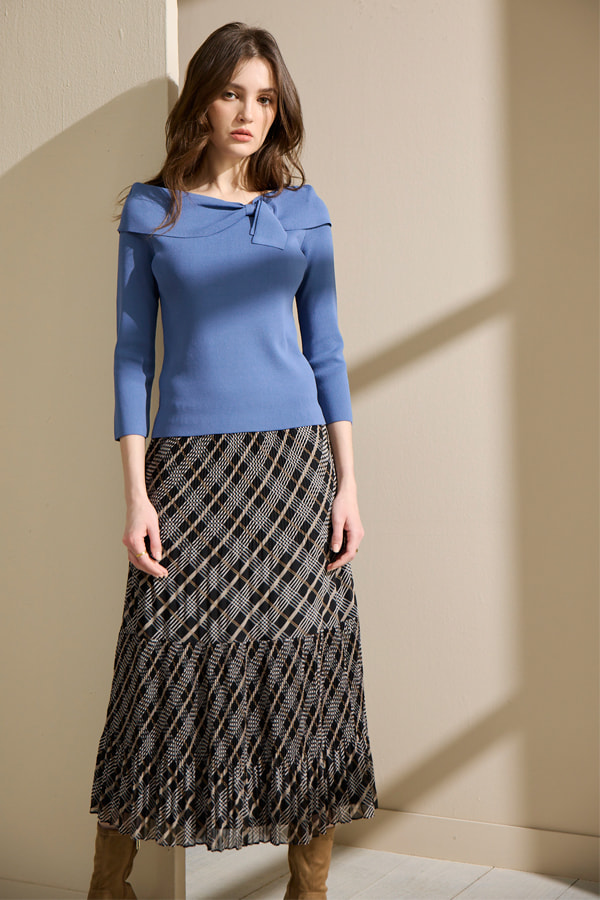 [Z5001]淑女一字行圍領針織衫 藍 M