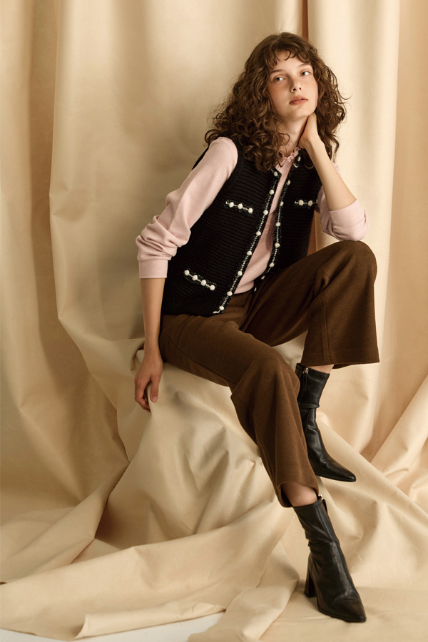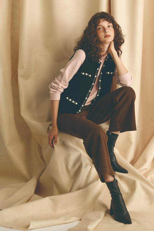 [Z5023]貴氣封毛絨針織背心 粉紅 M