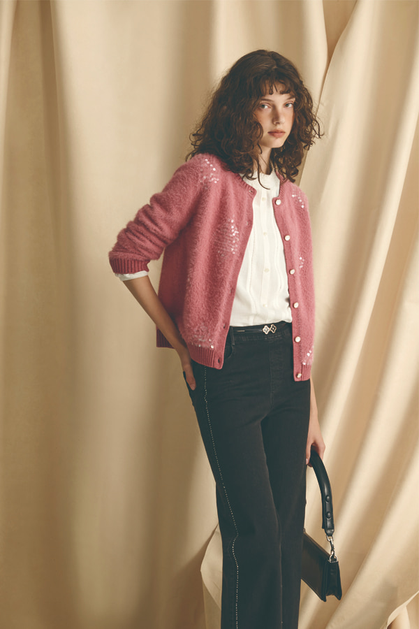 [Z5028]繽紛亮片毛絨針織外套 粉紅 M
