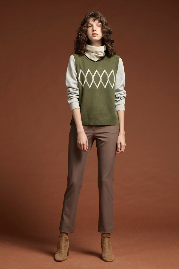 [Z5036]菱紋假兩件式針織衫 綠 M