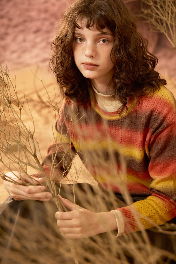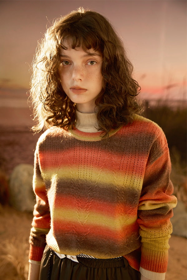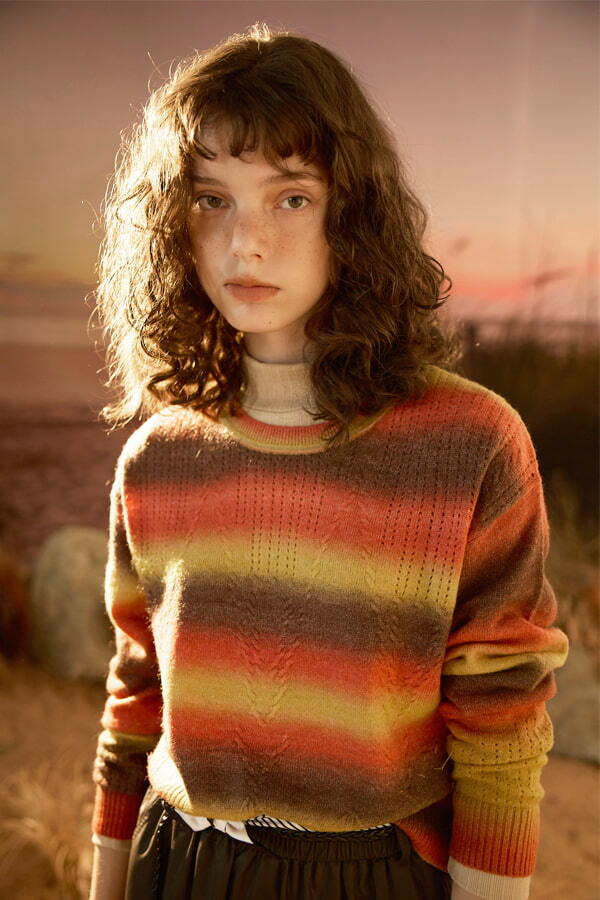 [Z5037]繽紛暖系色彩保暖針織衫 黃 M