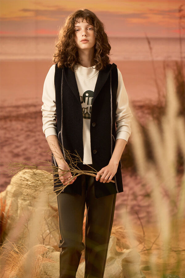 [Z5038]修身長板連帽針織背心 卡其 M
