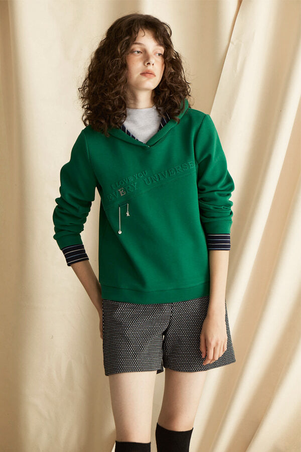 [Z7011]字母錘鍊吊飾連帽上衣 綠 M