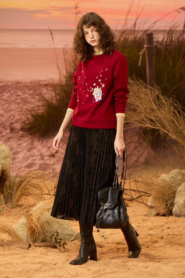 [Z7012]歡樂亮片泡米花上衣 紅 M
