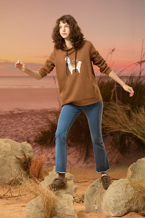 [Z7016]可愛玫瑰羊駝連帽上衣 卡其 M