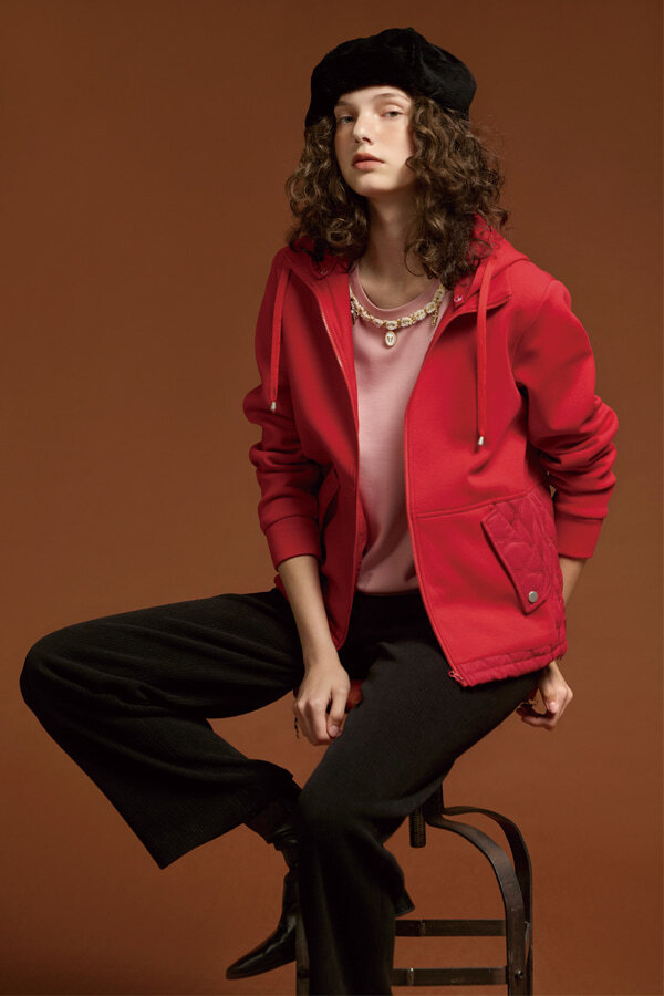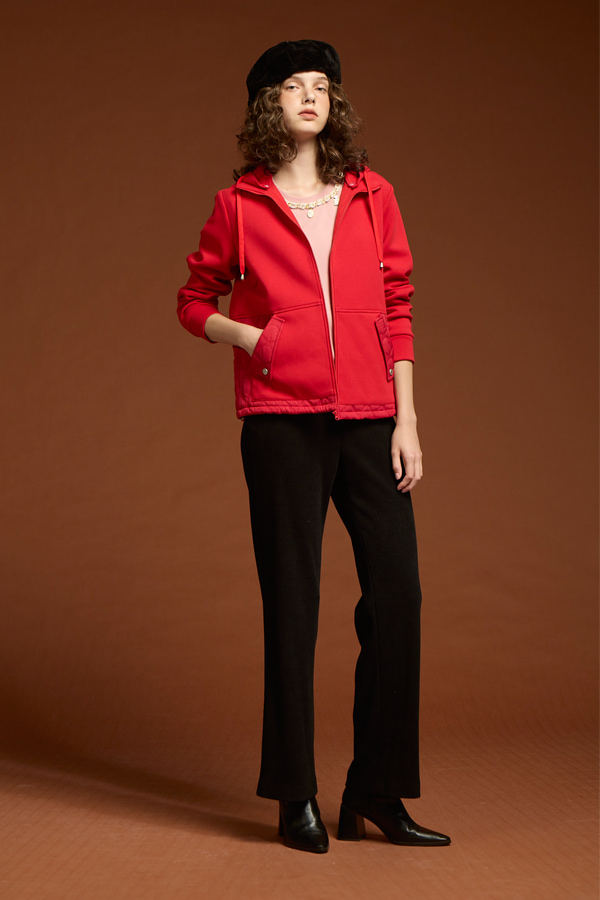 [Z8003]運動風保暖連帽外套 紅 M