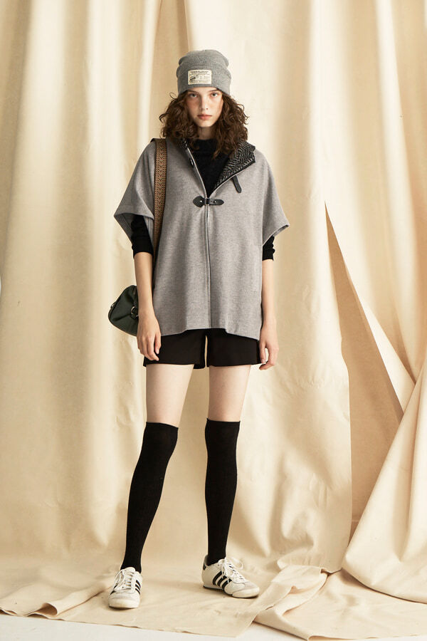 [Z8009]率性高領披風外套 黑 M