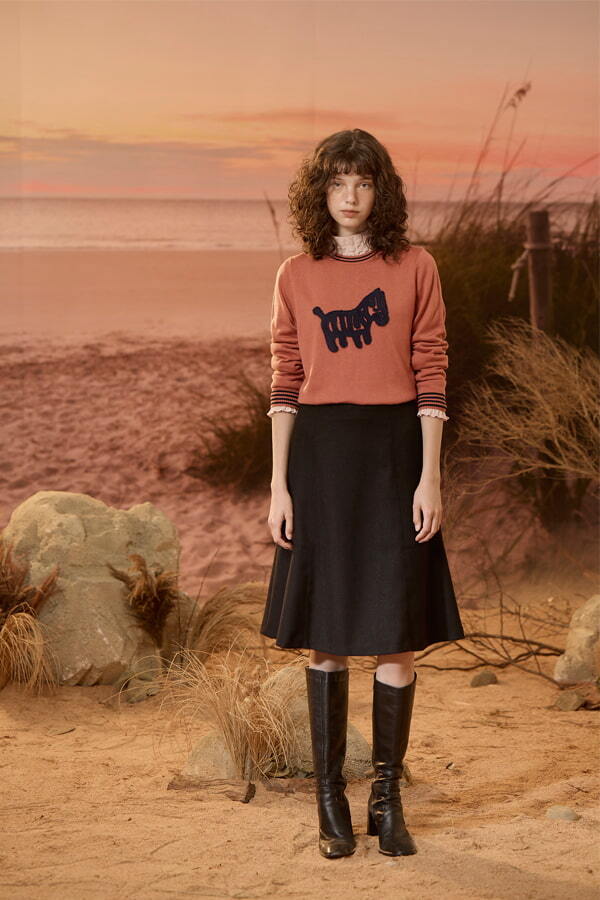 [Z2205]氣質及膝A字裙 咖啡 M