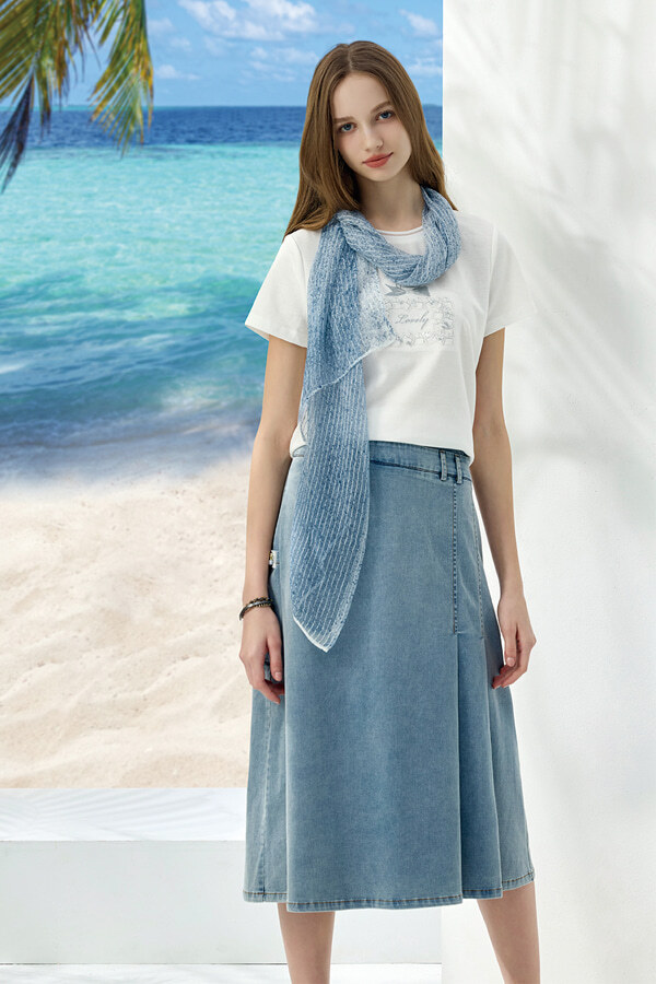[Y0254]淑女打摺A字牛仔裙
