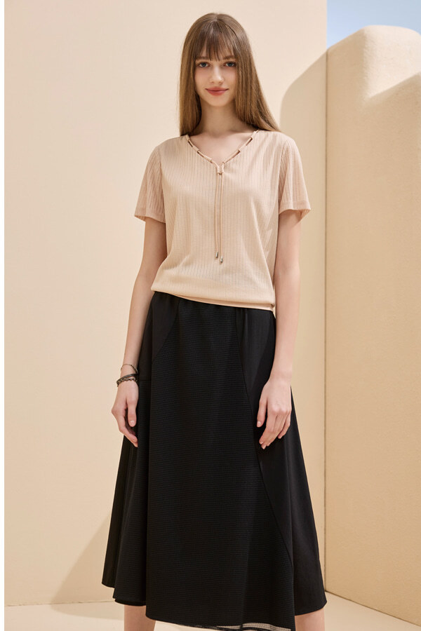 [Y0768]高雅領口穿帶上衣 綠 M