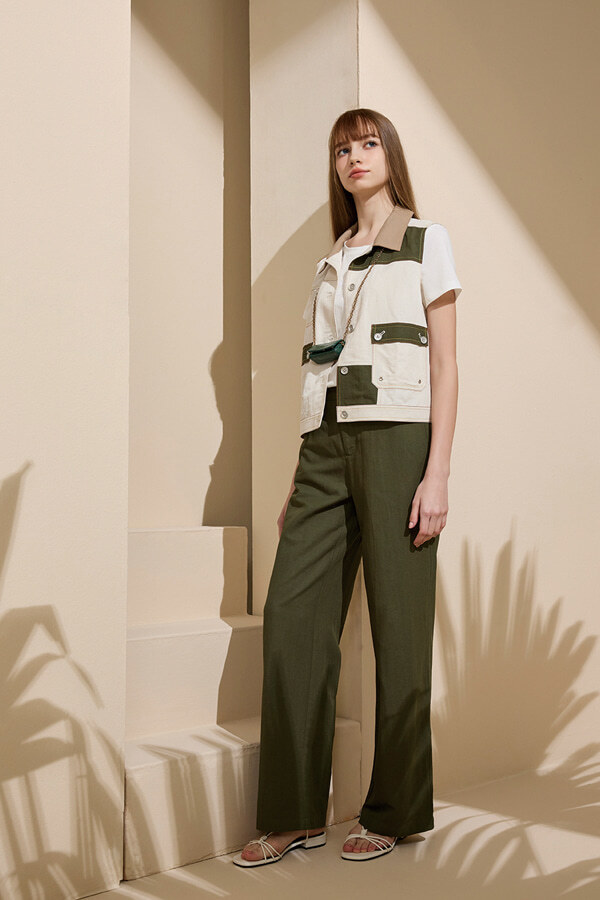 [Y2102]率性直筒西裝長褲 綠 M