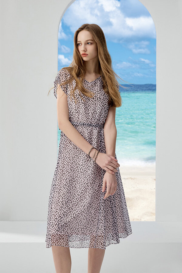 [Y3003]氣質連袖腰身洋裝 粉紅 M