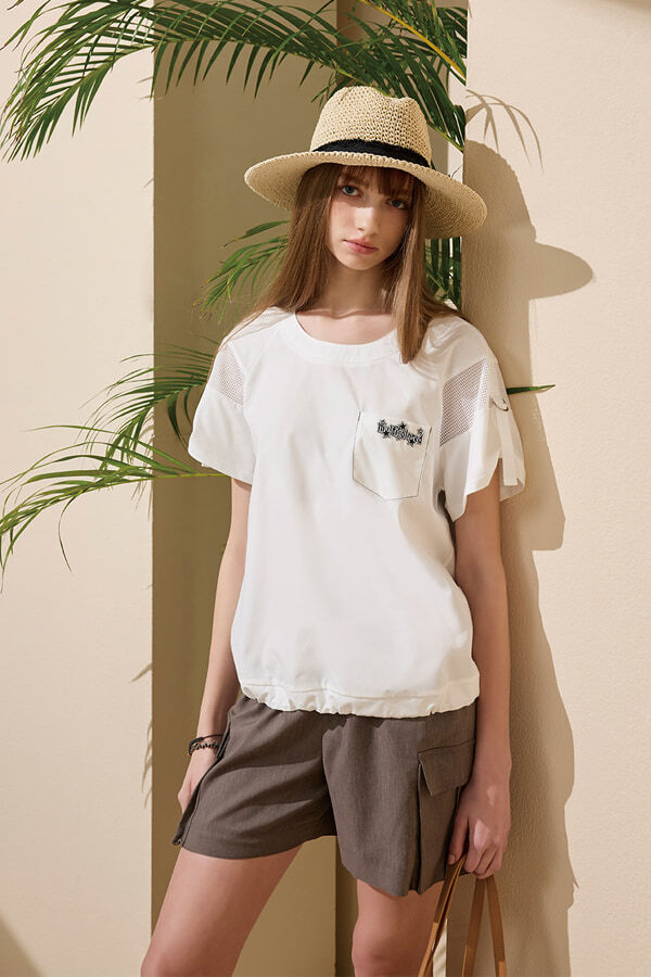 [Y7052]休閒百搭網狀拼接袖子口袋上衣