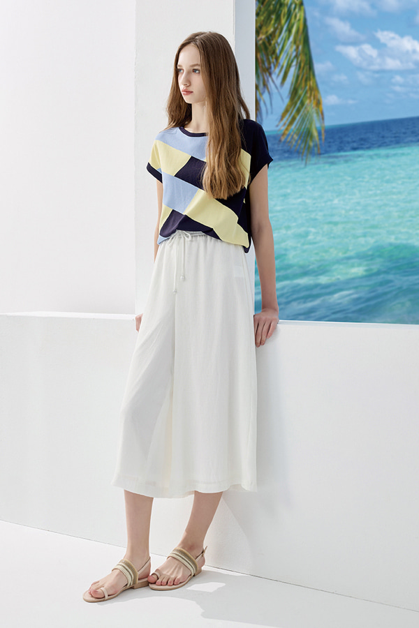 [Y5004]三色拚接連袖針織衫 藍 M